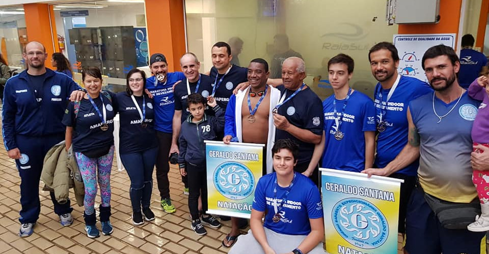 Em uma parceria inspiradora, as Equipes Mirim-Sênior e Master do Grêmio Geraldo Santana representaram o clube na 5ª Maratona de Natação em Revezamento Indoor, realizada no dia 13 de julho, nas dependências do Clube do Comércio - Raia Sul. O professor Márcio Chiarel, responsável pela equipe mirim-sênior, destacou que a prova demandou muito suor e resistência dos atletas geraldinos, já que a competição contou com a participação de 11 equipes, com mais de 60 atletas que se revezaram durante 1h30min de competição.